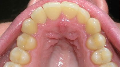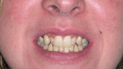 Paciente adulta con fuerte apiñamiento, mala higiene por dificultad en el cepillado, mordidas cruzadas dentales y que no quería tratamiento con brackets.