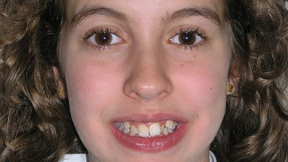 Paciente con paladar estrecho y falta de espacio para caninos con mordida profunda.